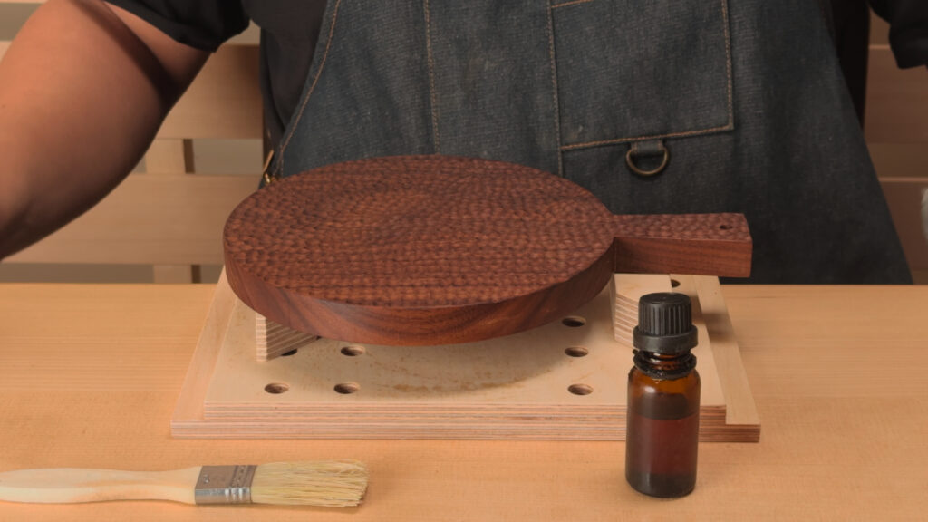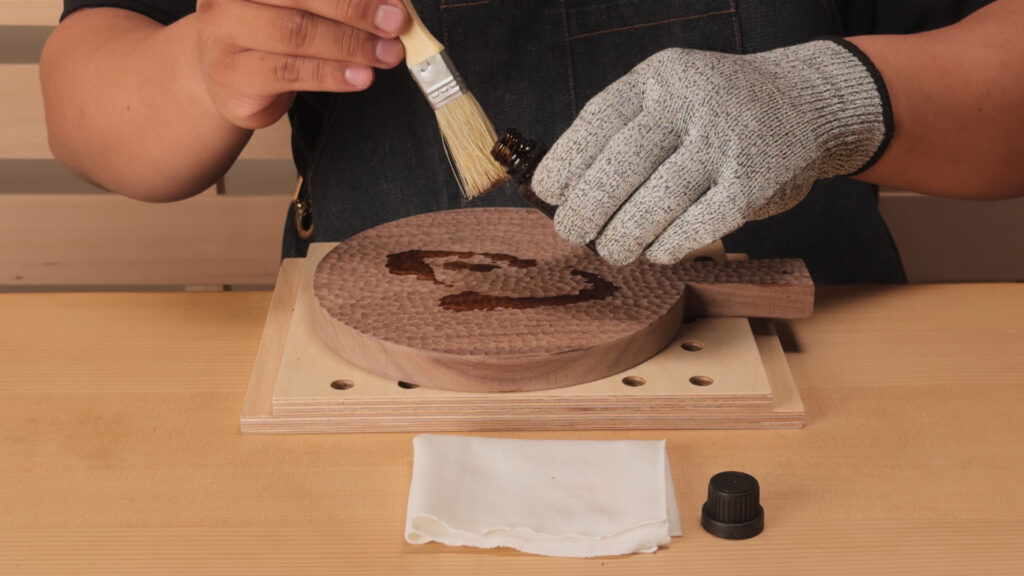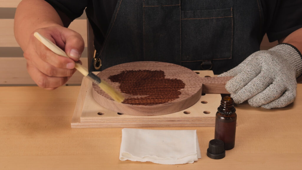 放置於陰涼通風處至少24小時,待乾燥硬化後再上第二道油(用量約是第一道的2/3)