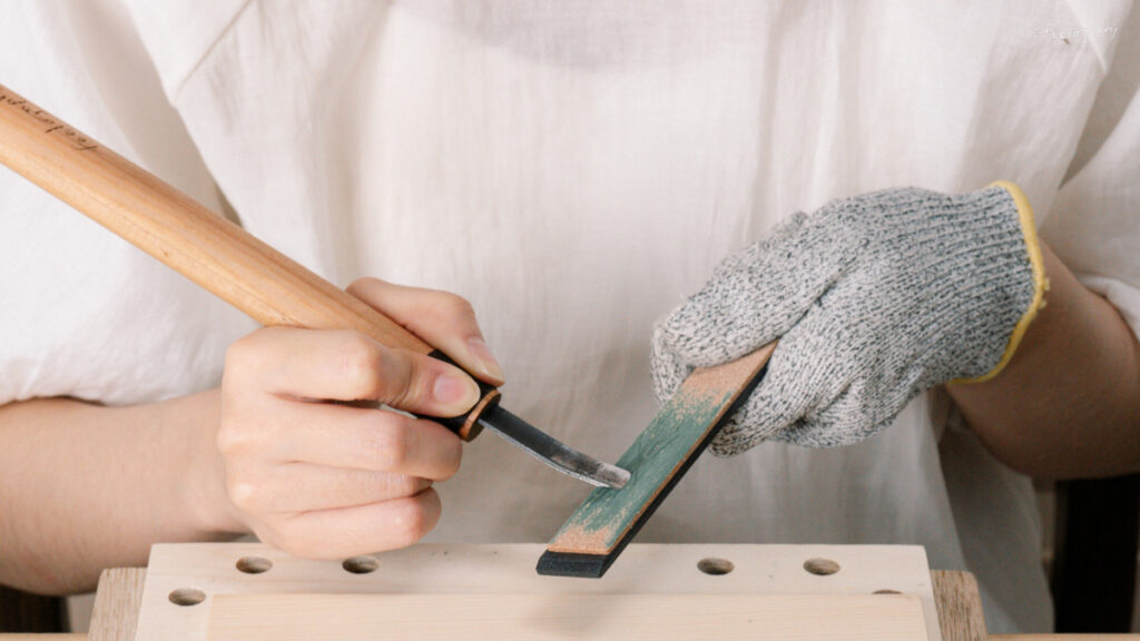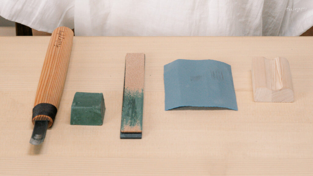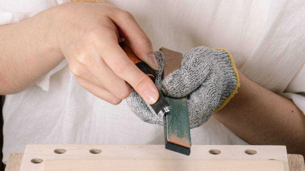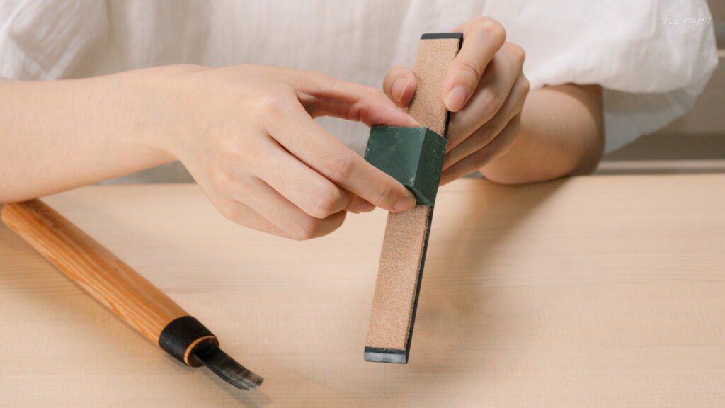 雕刻刀使用一段時間後,刀刃難免會變鈍。木工體驗內我們提供家中沒有磨刀石的初學者也能簡單打磨刀具的道具。