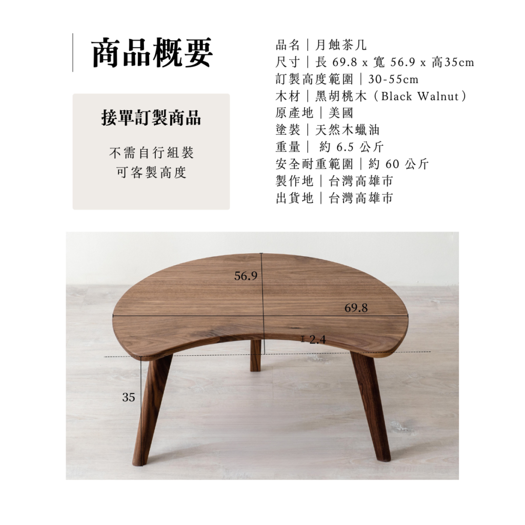 | 桌高 | 35cm, 客製桌高(30-55cm) |