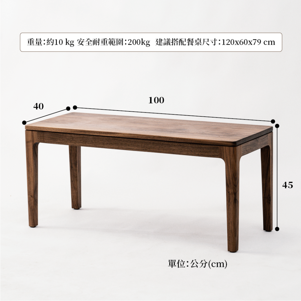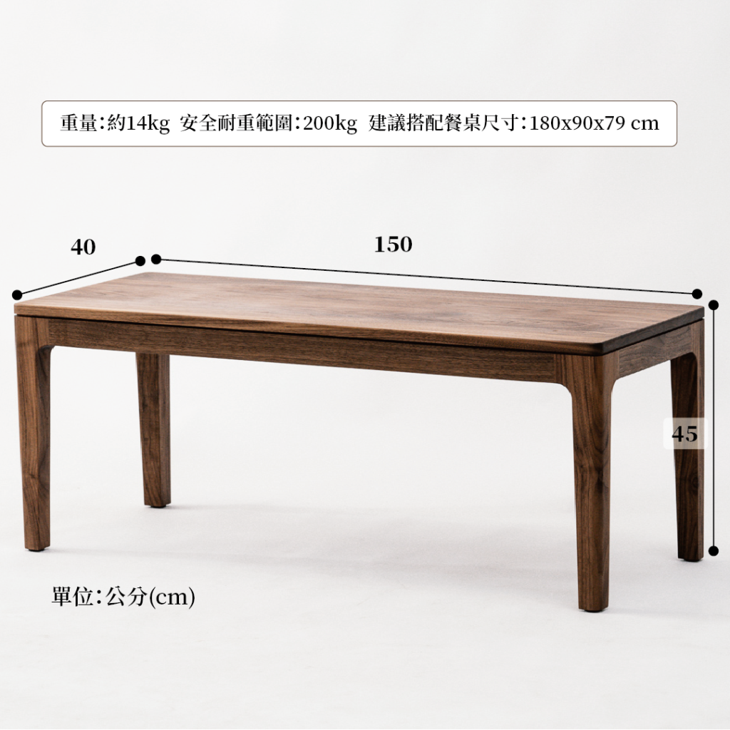 黑胡桃原木經典長凳