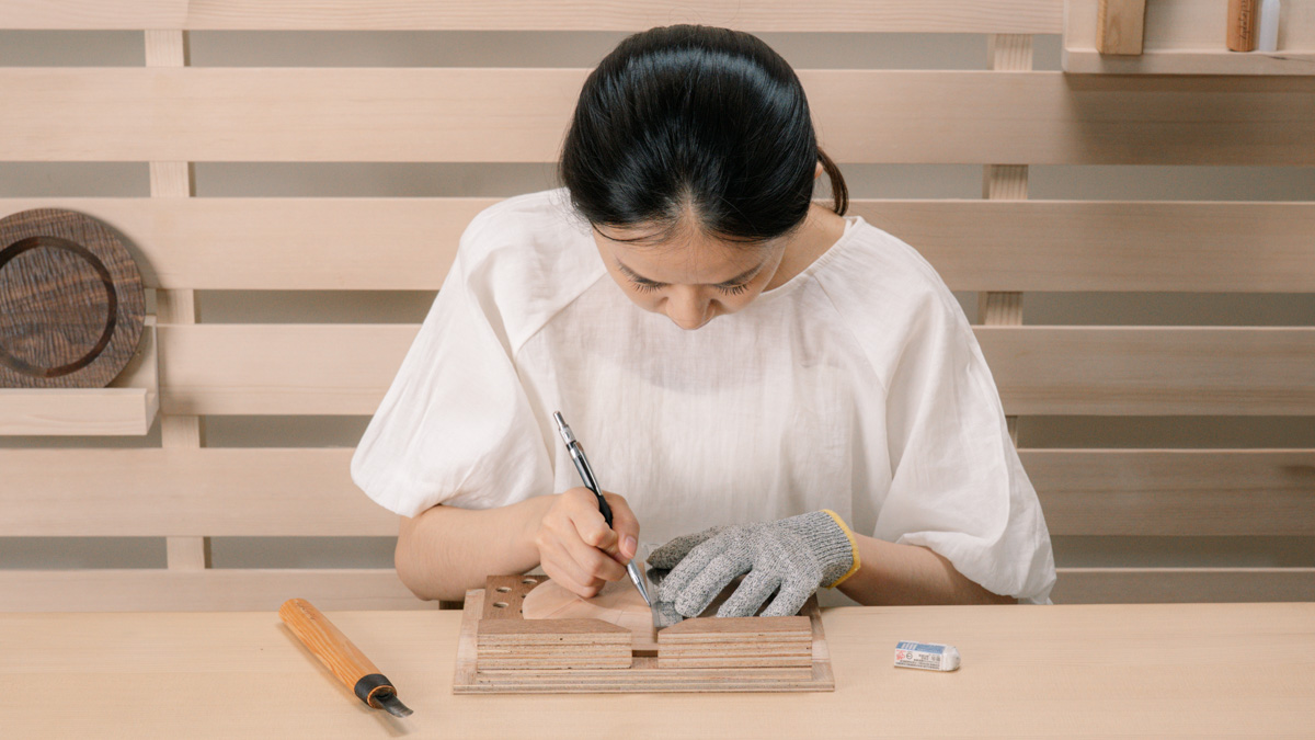 透過親手雕琢木頭紋理,