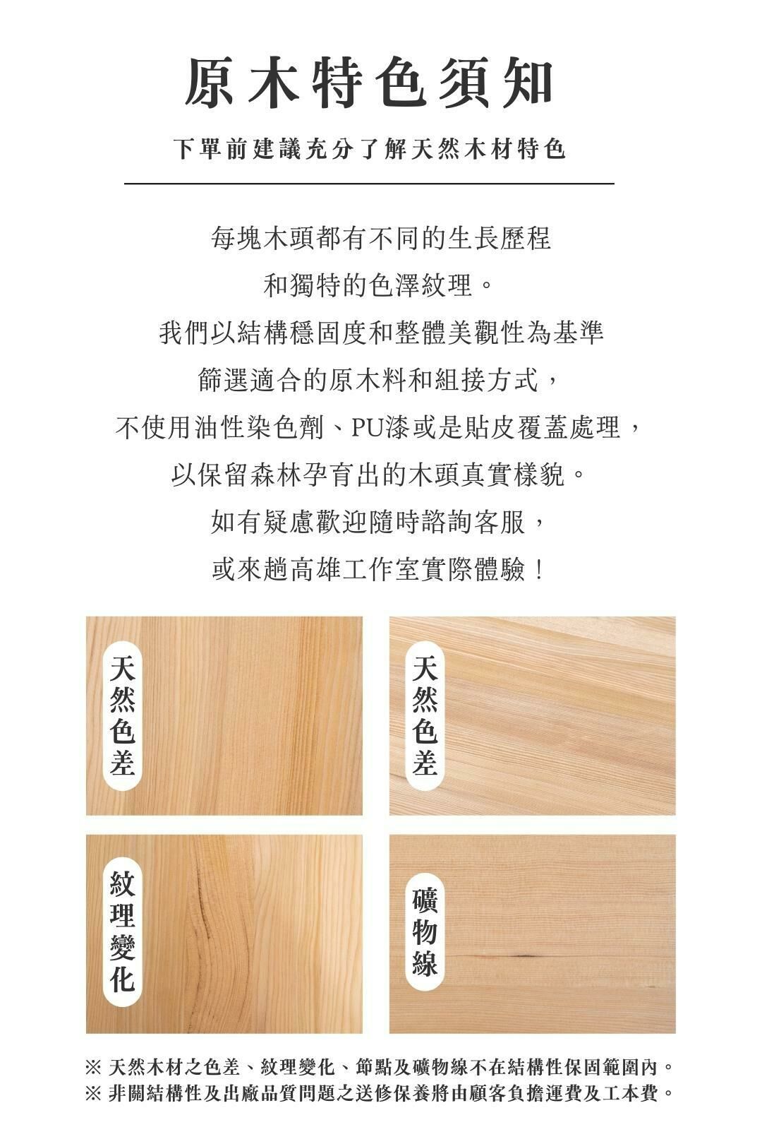 為保留木頭的原始質感及溫潤觸感,