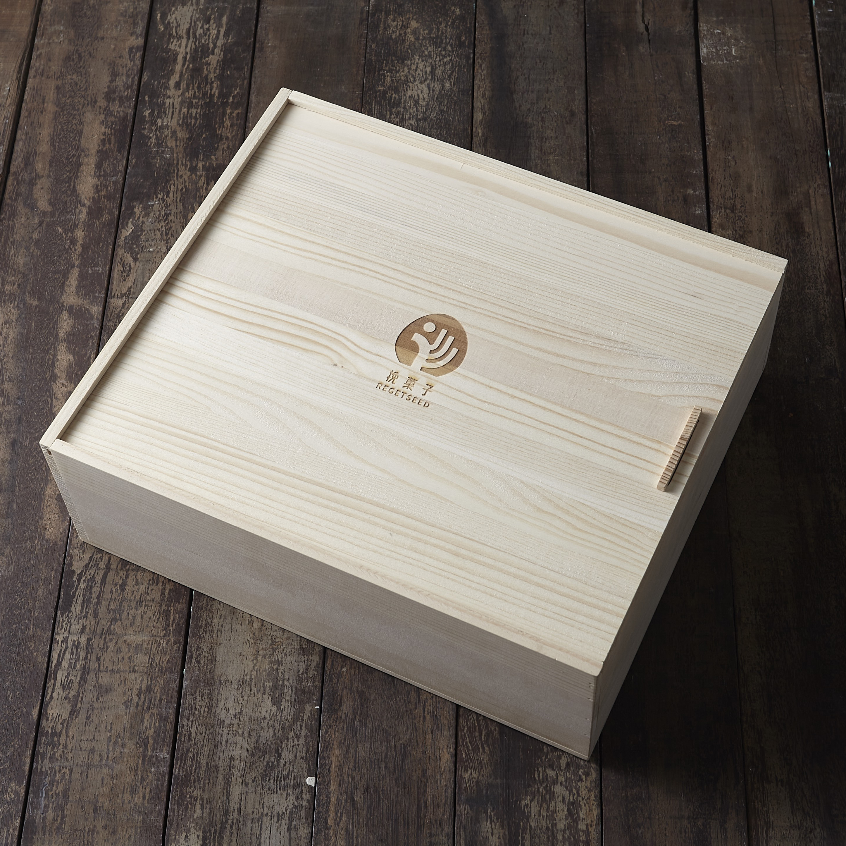 仁愛眼鏡,訂製「中秋節茶葉實木禮盒」。採用松木,精緻的雷射雕刻技術搭配客戶品牌Logo,讓實木禮盒更加精美。