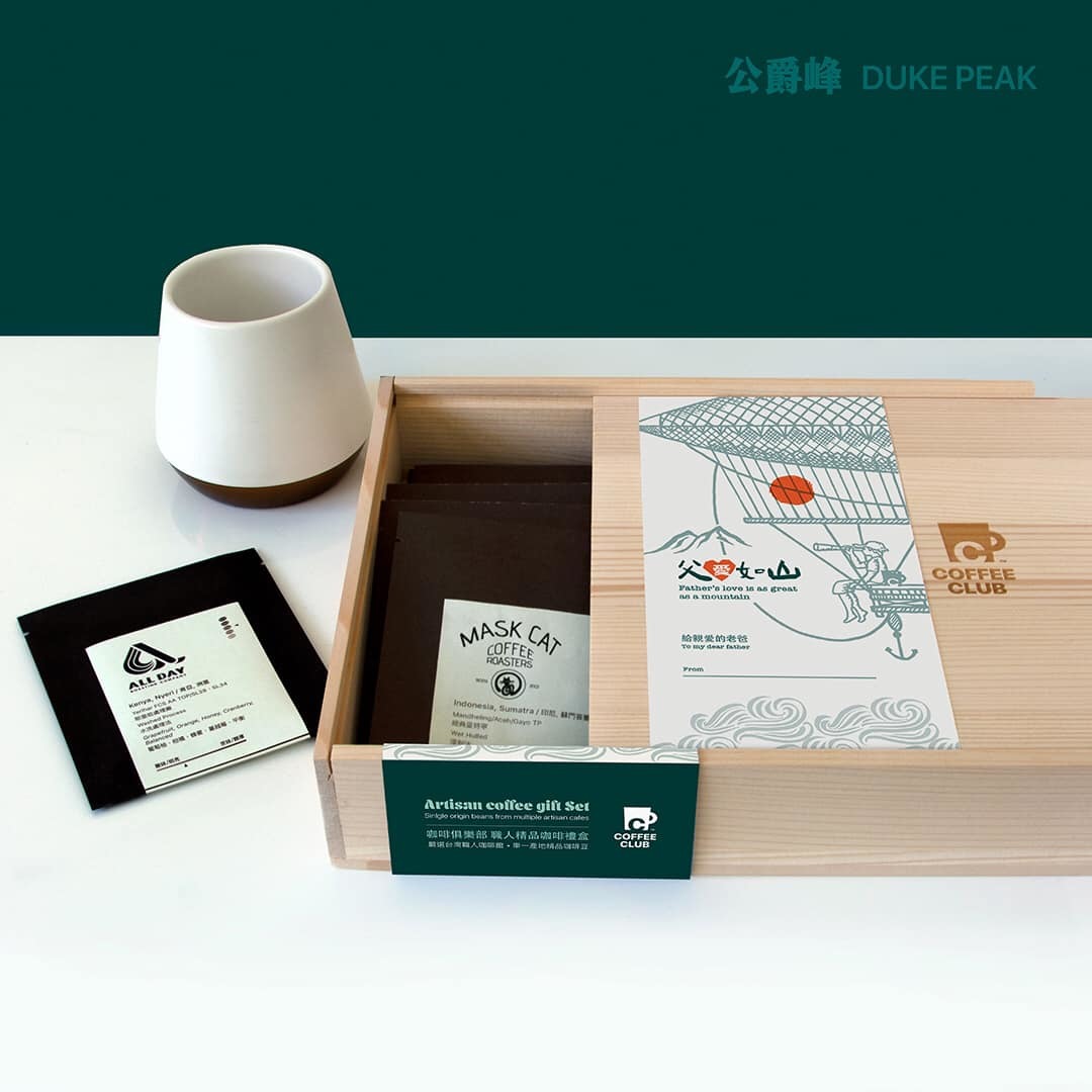 咖啡俱樂部訂製,「感恩咖啡禮盒」採用AA級北美杉木原木薄板製作,抽拉式設計精細的切割搭配細緻的打磨工藝,讓銜接處固定牢靠。使用高精度雷射雕刻,呈現禮盒圖示細緻質感。