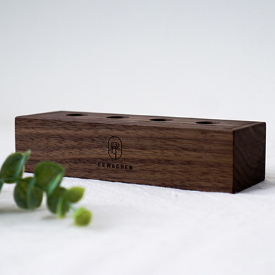 使之覺醒生化科技有限公司 為旗下品牌Erwachen 醒寤,訂製商品「香水展示台」。採用珍貴的AA級黑胡桃木深褐黑色調紋理,搭配精細的雷射雕刻技術與職人精準鑽孔以達客人需求。