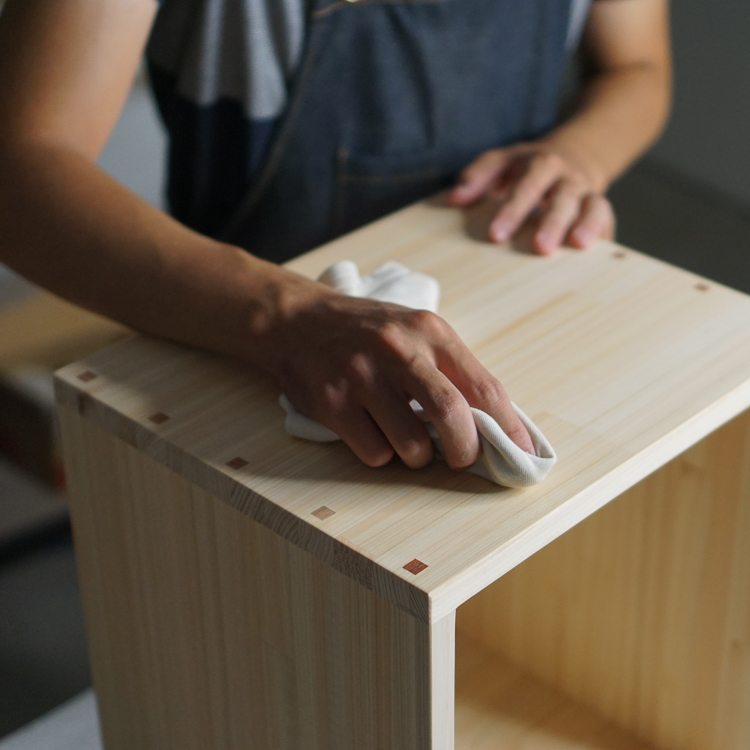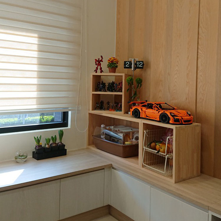 表面則使用無毒水性家具漆,保護原木表面,也守護家人健康。