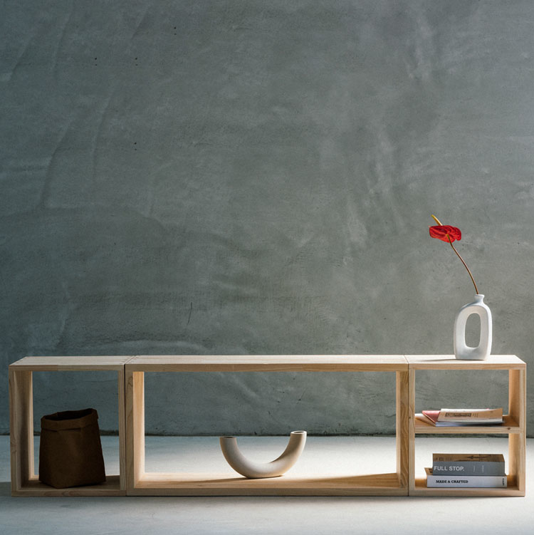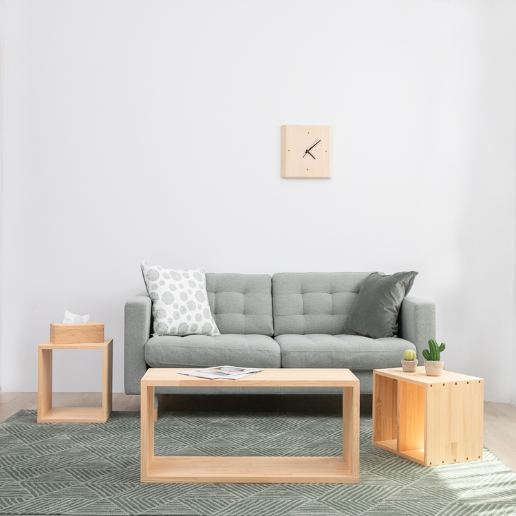 夏日涼感居間 榻榻米 x 彎月和室桌 x 隨意原木櫃組合