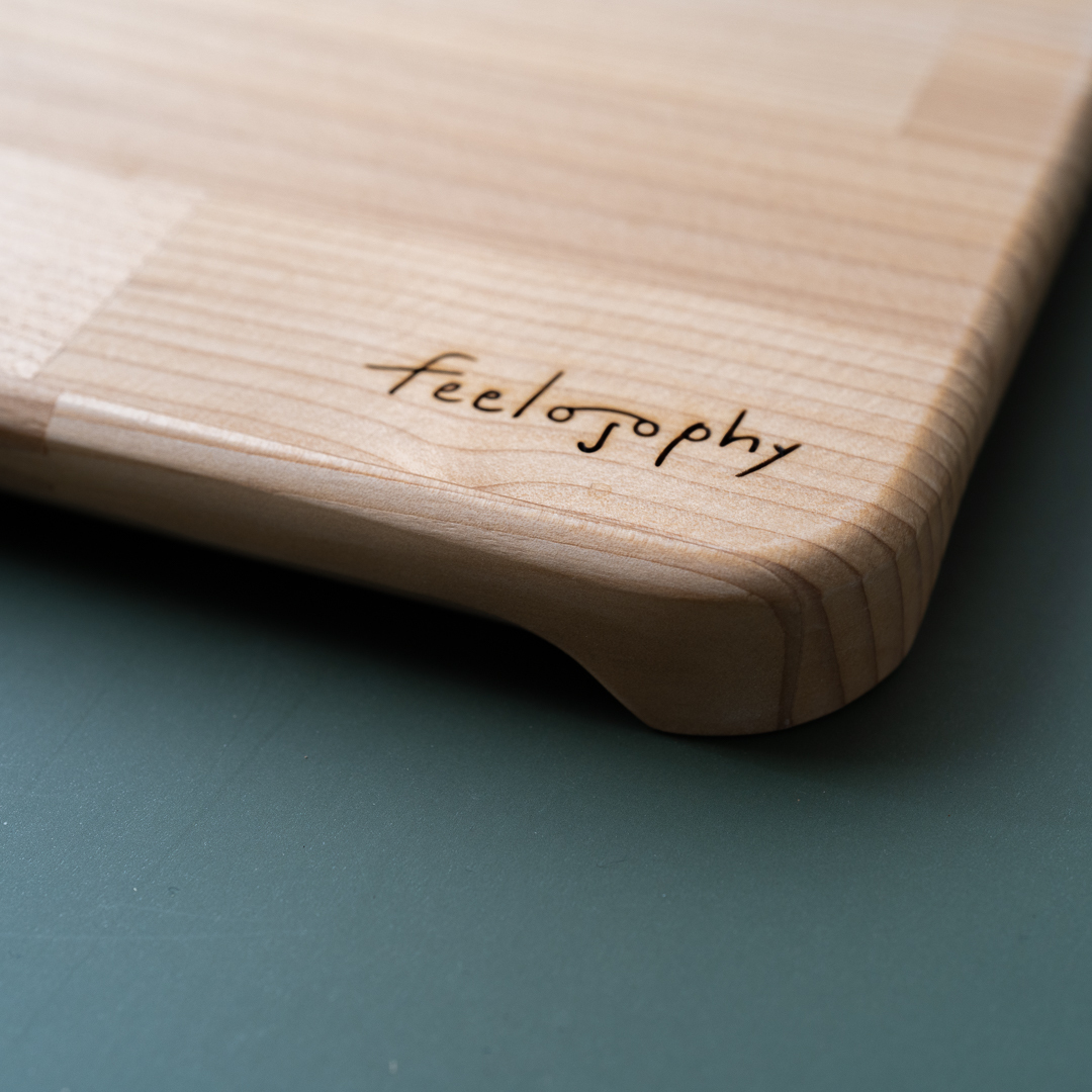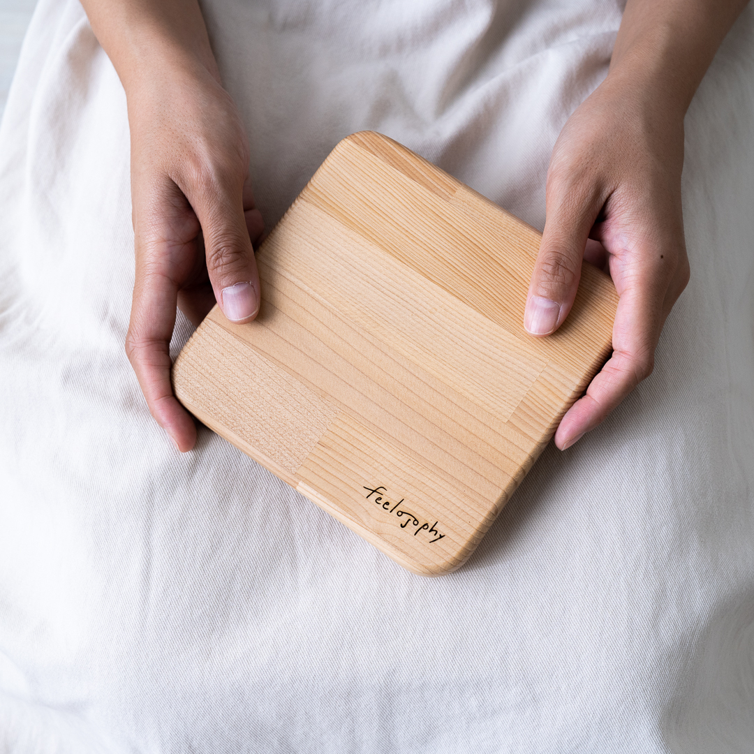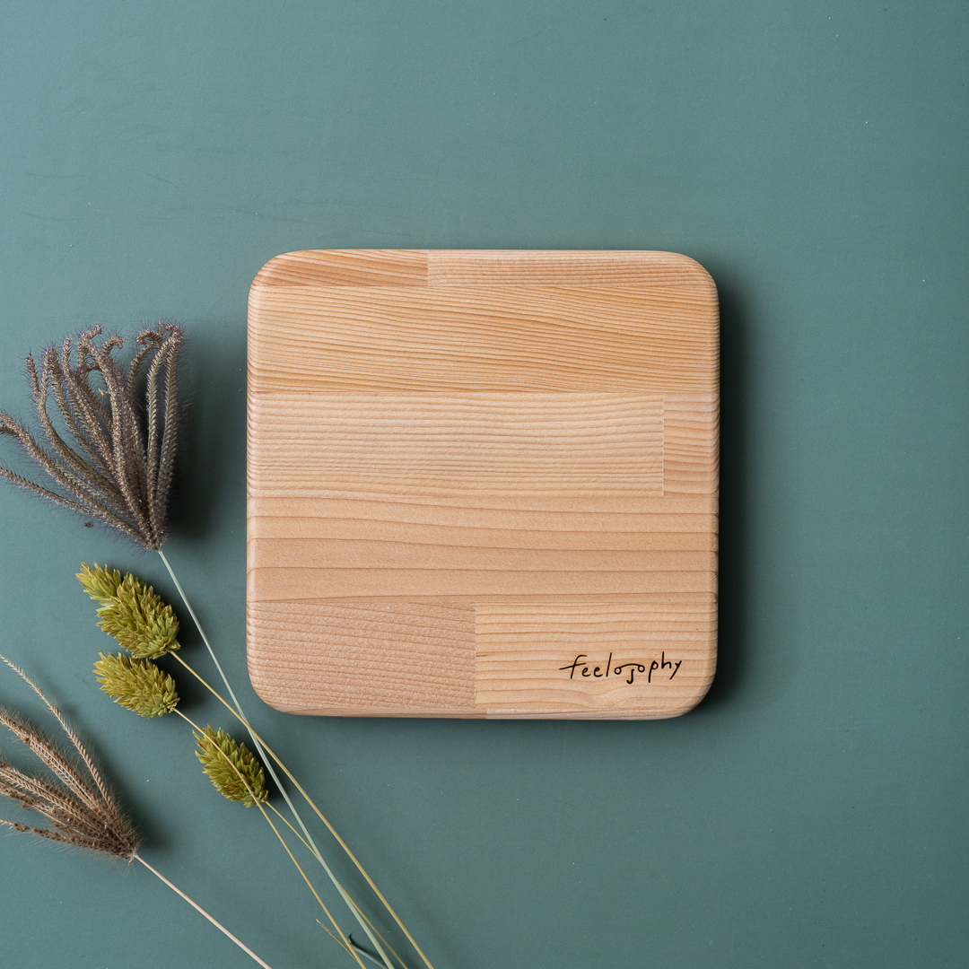 ▲圓潤倒角及細膩砂磨處理,觸感滑順且溫潤 (北美鐵杉隔熱墊)